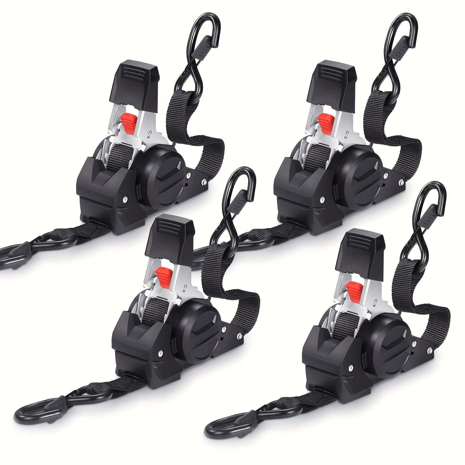 4pcs/2pcs Retractable Ratchet Straps, 10 Feet Heavy Duty Auto Self Retracting Tie Down Straps – 1500lb Break Strength – Cargo Straps for Truck, Cargo Trailer, Motorcycle, Moving, Appliances