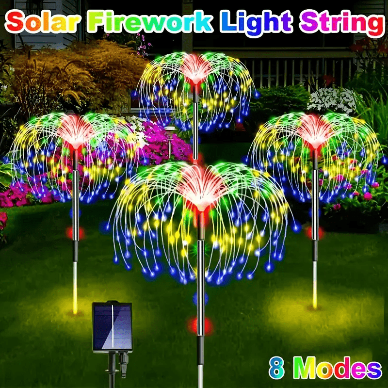 4pcs Outdoor Lights, Solar Lights Outdoor Garden 240/ 320LED Fireworks Lights for Christmas, Thanksgiving Decorations, 8 Lighting Mode Holiday Decorative Lighting for Villa Patio Balcony, Path Lawn, Camping Warm/ Multi-color