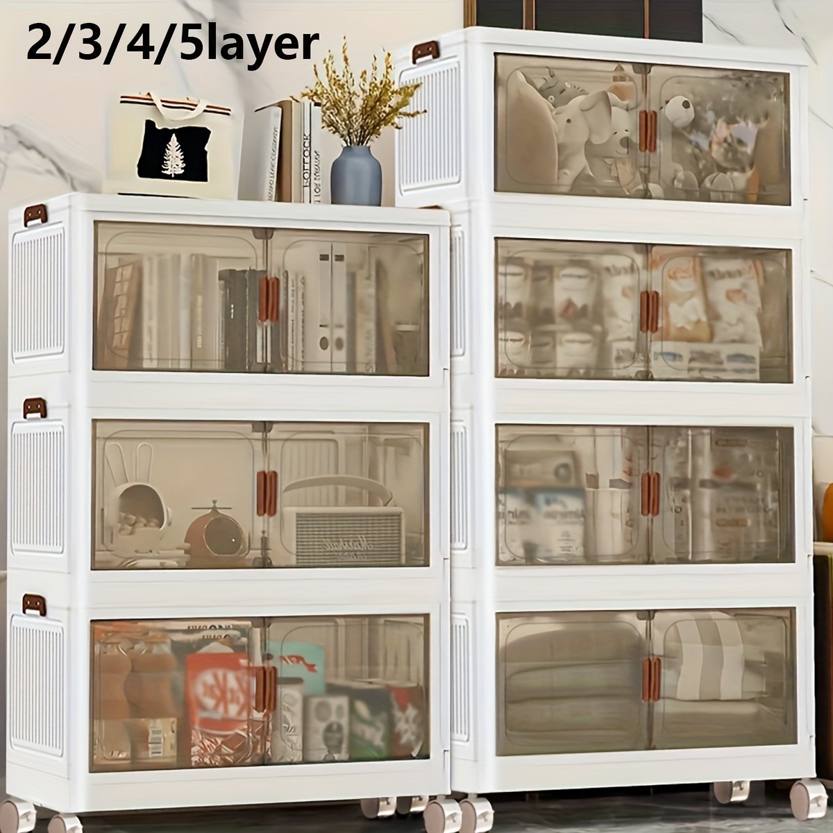 5-Layer Stackable Storage Boxes with Lids And Doors, Foldable Plastic Material, Suitable for Living Room, Bedroom, Kitchen, Office Organization, Shelves, Storage Rack, Storage Supplies