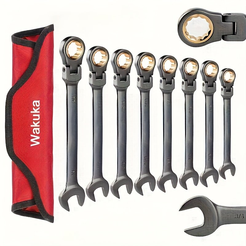 Be the first to review “6/8/10/12 Flex Head Ratchet Combination Wrench Set, Black Nickel Sandblasted Movable Head Wrench Set, 13/16-1/4-Inch, 72-Tooth, Cr-V Construction, Comes with Roll-Off Pouch” Cancel reply