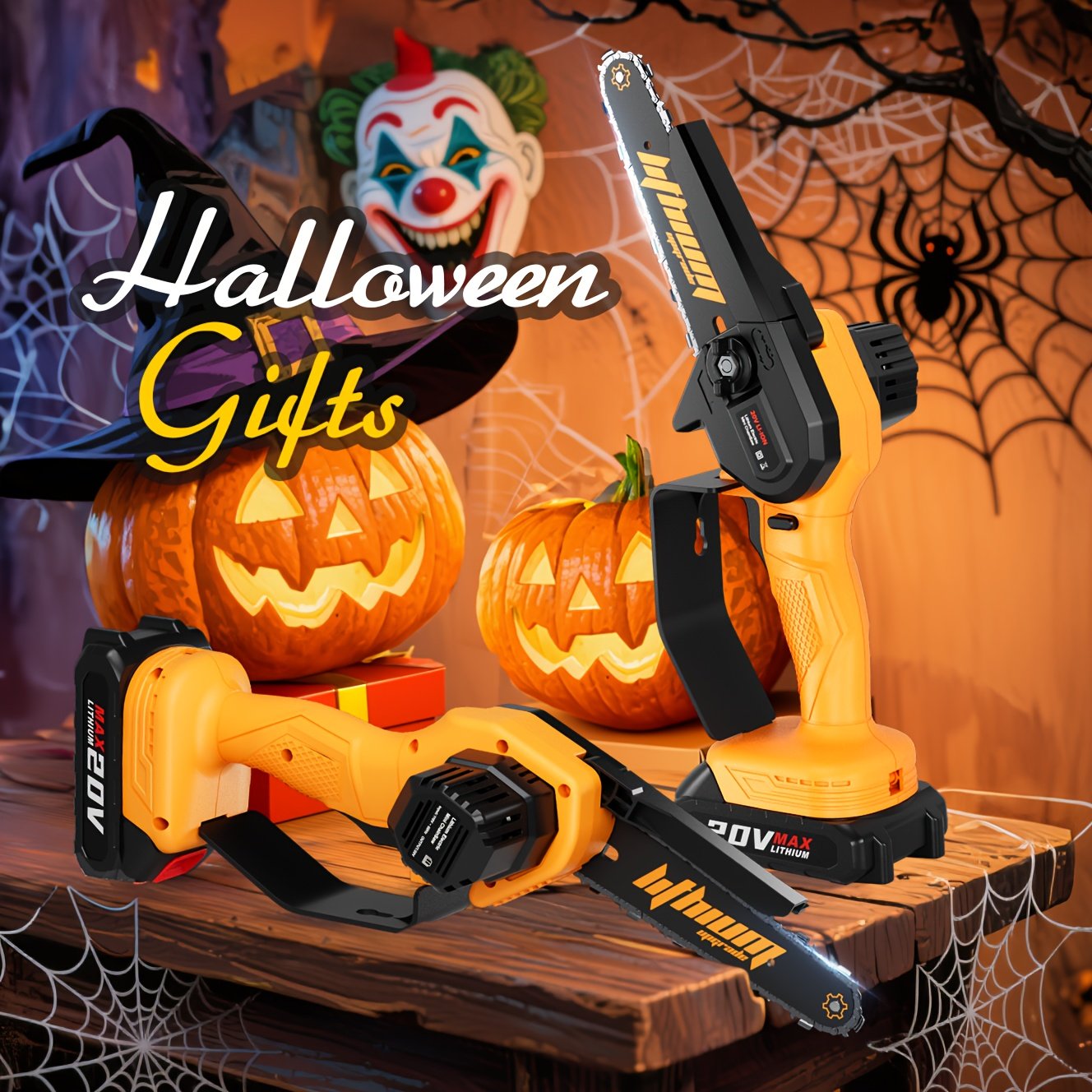6Inch Cordless Mini Chainsaw -Upgraded Pole Saw-with Fast Charging Lithium Battery, Safety Guard, for Tree Branches, Garden, Household, Firewood Cutting-Ideal Gift for DIYers, Landscapers, Dad, Men, Women-Halloween Atmosphere Props.