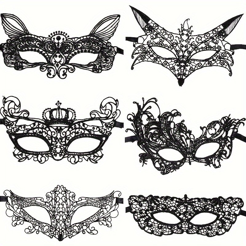 6pcs of lace masks carnival makeup party venice eye mask halloween sexy ladies lace masks suitable for makeup party carnival party costumes ball black suitable for men and women