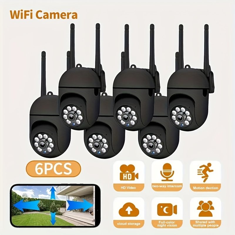 6pcs Wireless Wi-Fi Camera With Motion Detection, Color Night Vision, 355° Panoramic View, Two-Way Audio, Support 2.4G, Mobile Remote Monitoring For Home, Office, Farm, Suitable For Pets And Body Monitoring