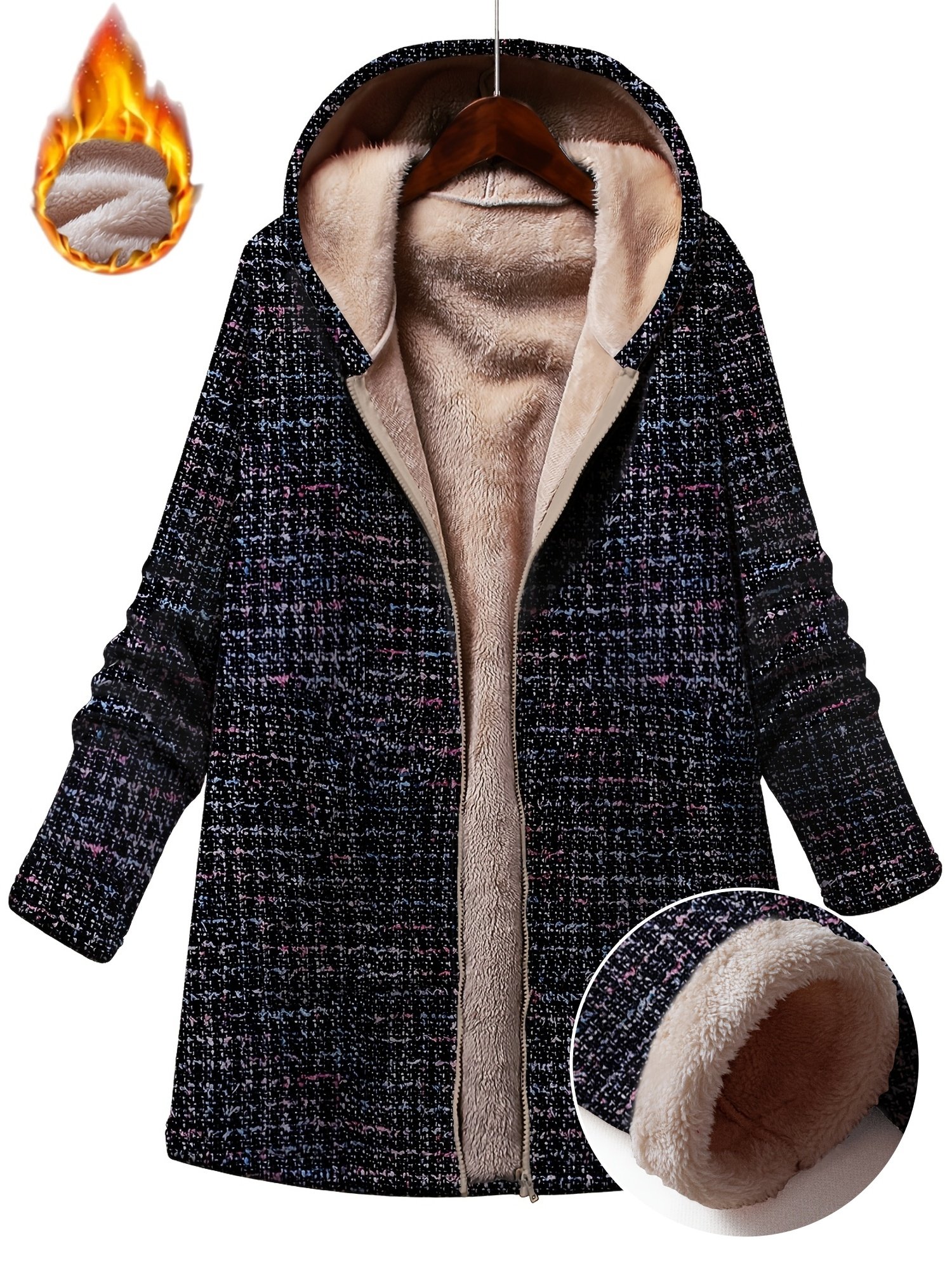 All-Season Long Sleeve Women’s Cozy Fleece-Lined Hooded Jacket with Vintage Plush Print – Casual Zip-Up Outerwear