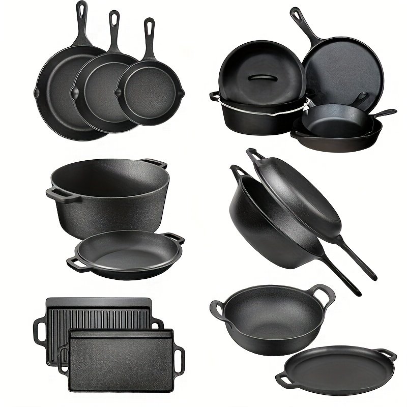 Cast Iron Cookware Set, 6-inch/8-inch/10 Inch Frying Pan, 10.24-inch X6.72-inch Dutch Oven, Two 20.5-inch X10.5-inch Grills, Heavy-duty Kitchen And Camping Kit, Compatible with Induction And Open Fire Sources, Rust Proof And Non Stick Surface, Induction Cookware, Outdoor Cooking, Traditional Griddles, Heavyduty Skillet, Rustproof Surface, Durable Construction, Grill Skillets, Cast Iron Pans, Cooking Hobbyists, Campers And Hikers