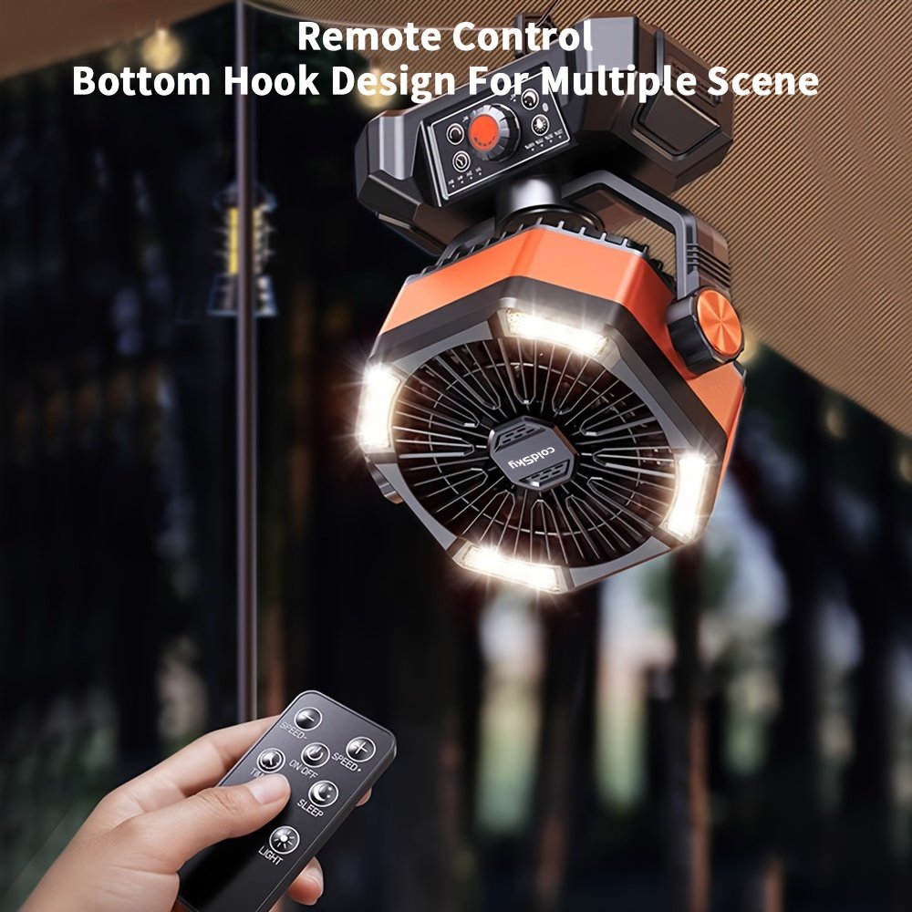 coldSky 20000mAh Camping Fan With Dual Motor, Battery Powered Fan With 4 LED Lanterns, 8 Speed Desk Fan With Remote Control, Portable Outdoor Fan With Hook For Tent, Power Outage, Construction Site