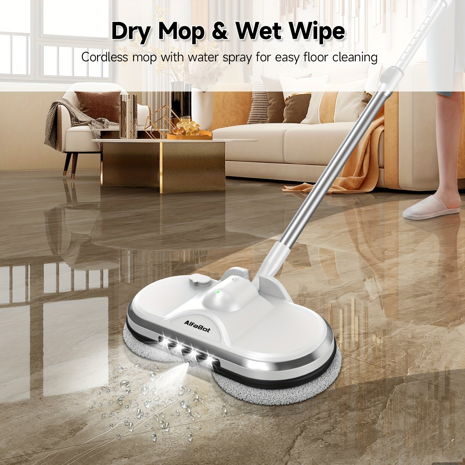 Cordless Electric Mop, Electric Spin Mop, Floor Cleaner with LED Headlight and Water Spray, Powerful Spin Mop with Water Tank for Hardwood, Tile Floors, Quiet Cleaning & Waxing