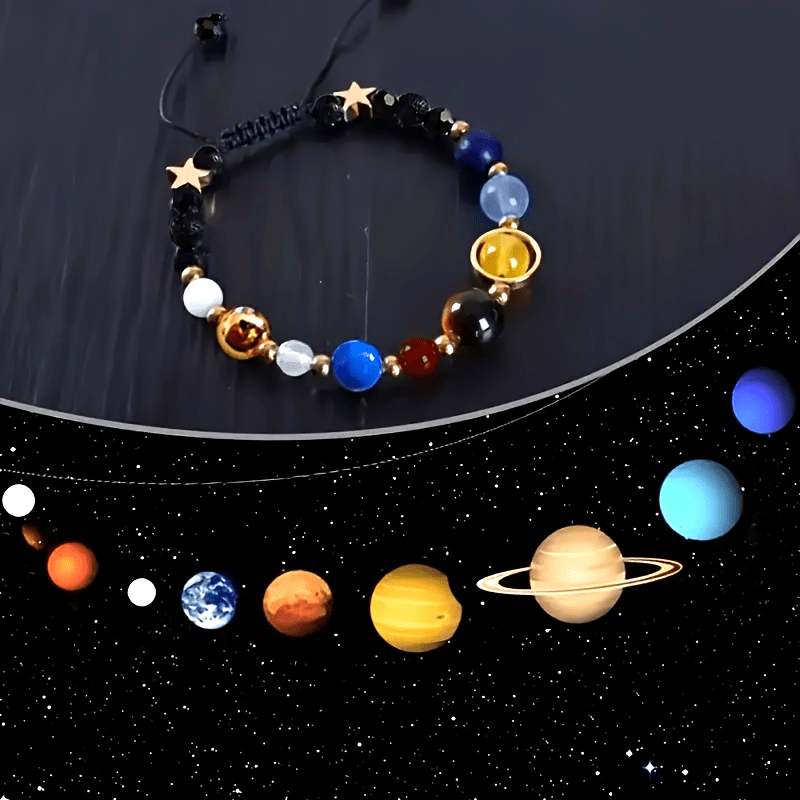 Cosmic Glass Bead Solar System Bangle – Eight Planets Fashion Jewelry with Durable Glass Beads, Perfect Accessory for Men and Women, Unique Gift Idea for Astronomy Enthusiasts and Space Lovers