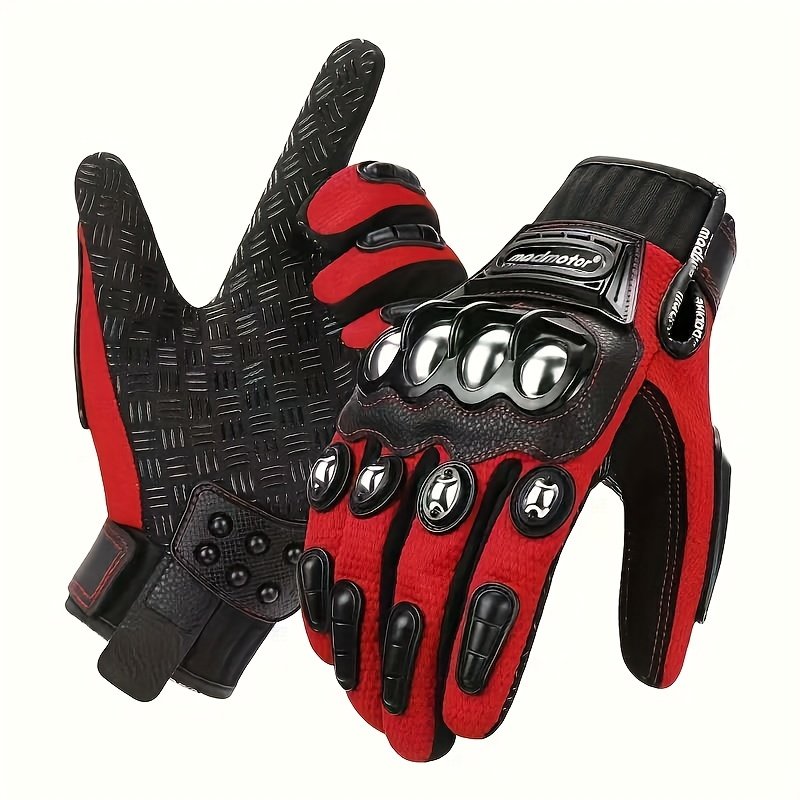 [Durable Motorcycle Gloves] MADMOTOR Steel Knuckle Motorcycle Gloves – Red & Black Design with Metallic Buckles, Adjustable Hook & Loop Closure, Touchscreen, Ergonomic Finger Protection for Motocross, BMX, ATV, MTB Cycling & Road Racing, Durable Glove Material, Sleek Glove Design