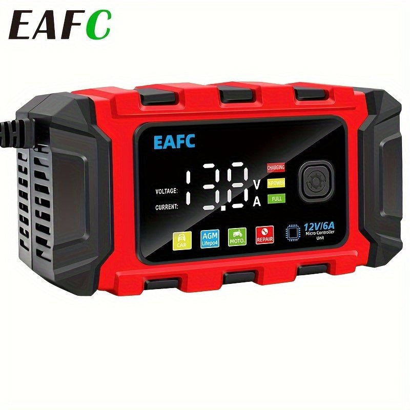 EAFC Large Color Screen Car Battery Charger 12V 6A Smart Battery Trickle Charger Automotive Battery Maintainer for Lead-acid, Lifepo4 Battery – For Car Owners – Suitable for All Seasons – Ideal Gift for Car Enthusiasts
