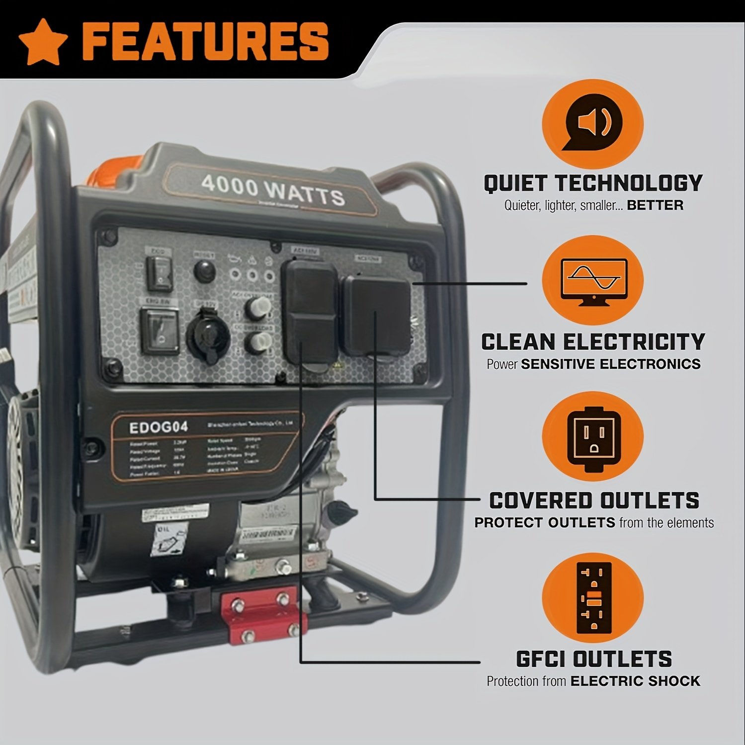 Efurden 4000W Ultra Quiet Portable Generator – 76dB, Runs for 6.5 Hours at 50% Load, Compact 65-Pound Design, Easy-Start Handle, Ideal for RVs, Home Backup, Camping & Outdoor Emergencies, Durable Plastic Body, Rv Power Supply, Easy Carry Handle, Robust Construction, Rv Travelers