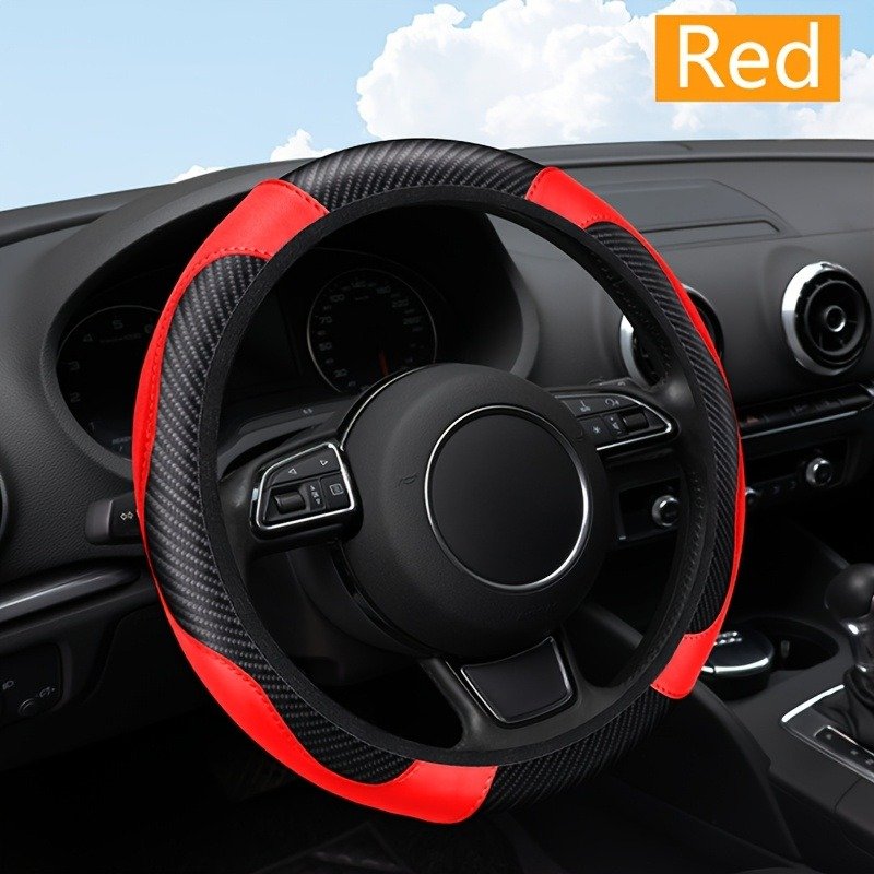 elastic pu leather steering wheel cover car handle protector carbon fiber pattern free multiple color options construction driving enthusiasts anti slip wrap car leather steering wheel cover 15 breathable
