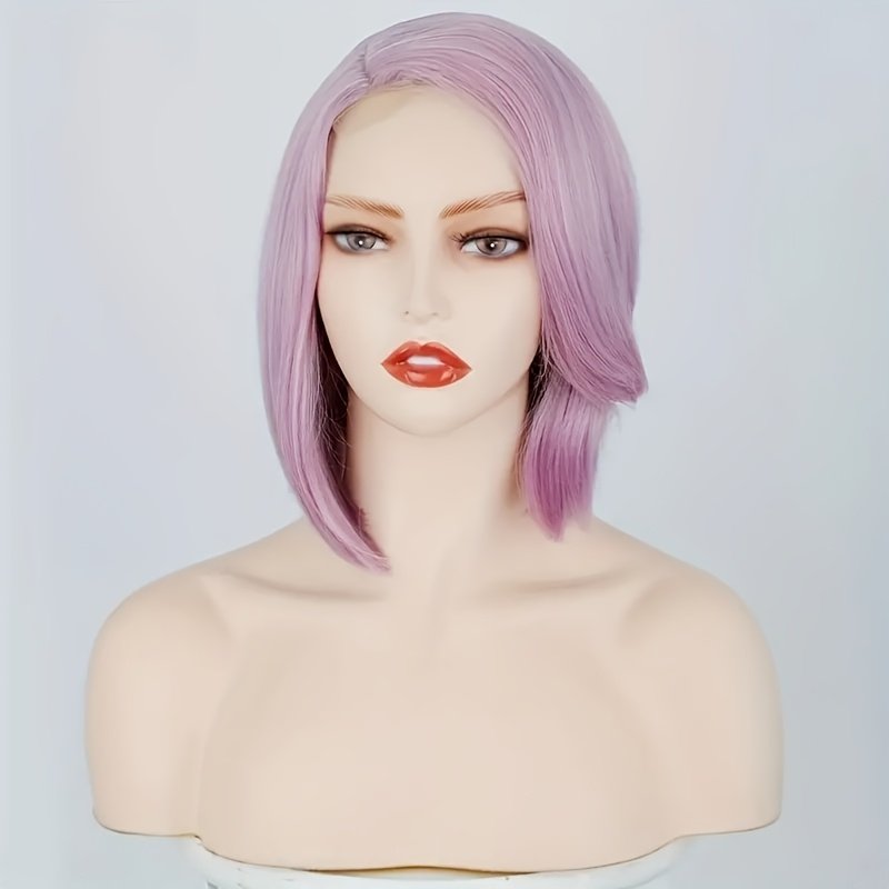 elegant womens purple shoulder length wig straight side parted synthetic heat resistant palette ideal for parties role play hair wig