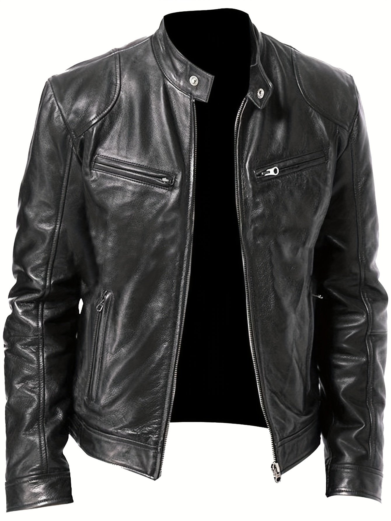 ex strech mens zipper jacket coat full zip motorcycle jacket with full zip closure full length zipper front stand collar zippered pockets heavy duty brown leather like texture lining casual formal outerwear for everyday business or riding in large sizes hand washable ideal for autumn winter durable stylish mens outerwear zipper jackets for men motorcycle fabric vest for men jacket for motorcycle men mens vintage motorcycle jacket