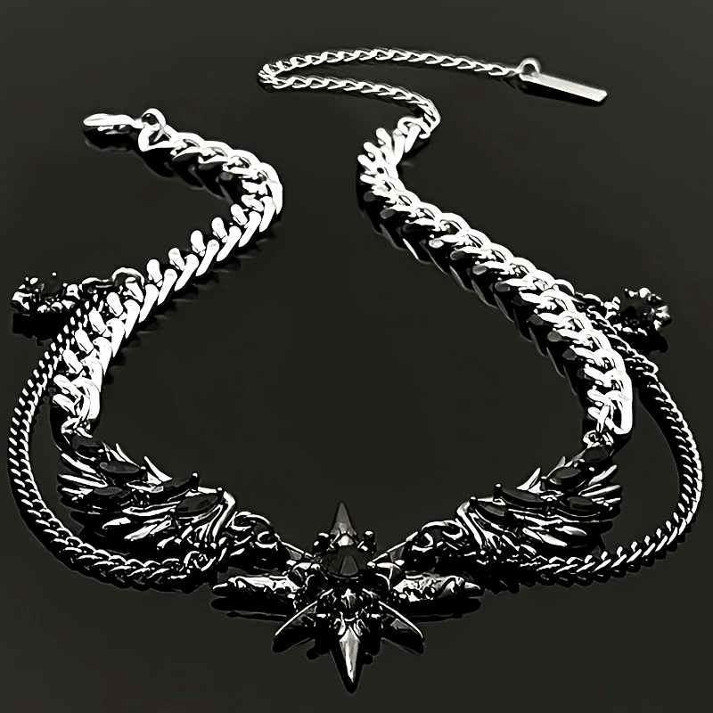 [Fashion Star Necklace] Dark Wind Fashion Star Nail Wings Necklace | Hip Hop Street Style Men’s Collarbone Chain – Perfect for Halloween, Christmas Parties, Daily Wear