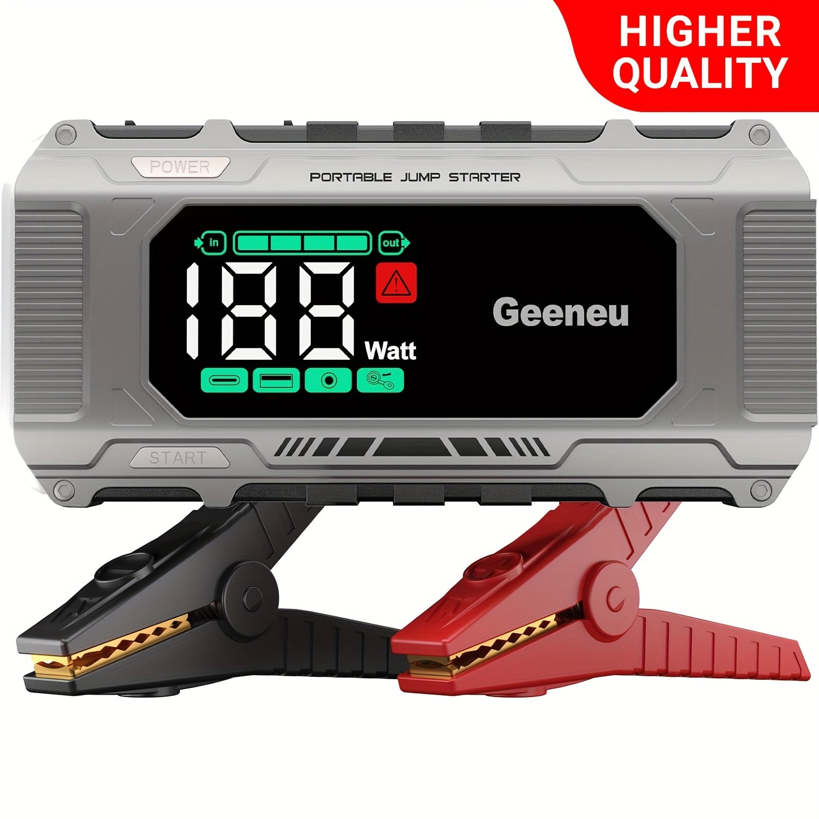 Geeneu Battery Jumper Starter Portable 6000A Car Jump Starter, 12V Jump Box For Car Battery Charger Power Pack For 8, 1.32gal Gas/1.85gal Diesel, QC 18W, Large Screen, Lights