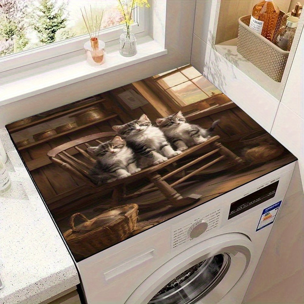 [Gentle Care] Soft Polyester Absorbent Pad for Dishes, Washing Machines & Faucets – Adorable Kitten Design, Durable Non-Woven Fabric & Rubber Blend, Perfect Kitchen & Bathroom Accessory, Ideal Gift for Pet Lovers, Family & Friends, Kitchen Appliance Cover | Decorative Cover | Functional Decor