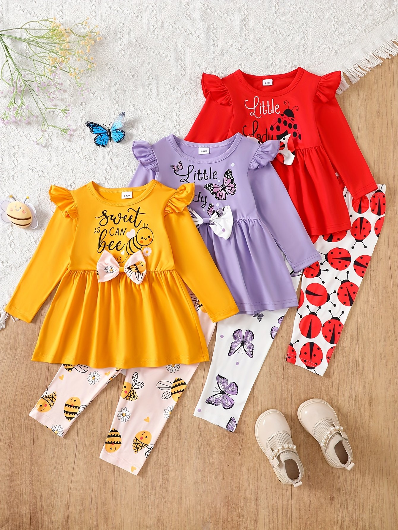 girls autumn and winter baby girls autumn and winter cute animal letter printed flying sleeve long sleeved top animal full printed long pants three piece set of 6pcs suitable for outdoor leisure a gift for children outdoor