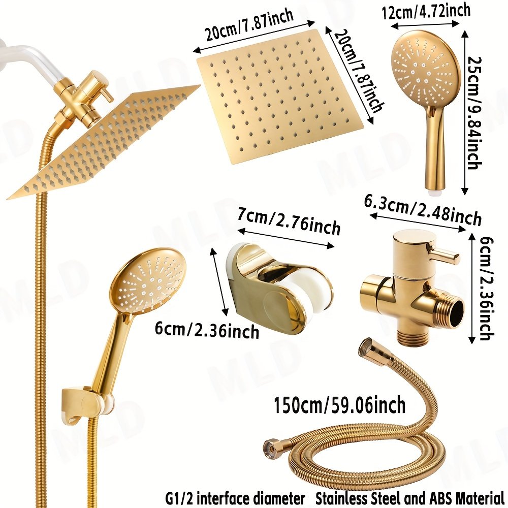 golden high pressure square shower head and handheld shower set wall mount painted diverter control metal construction with 59 stainless steel hose 3 way diverter shower head holder shower combo for bathroom