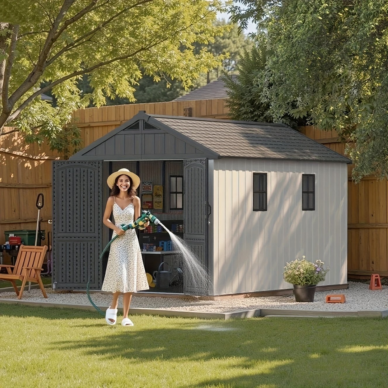 8 x 12ft plastic tool storage shed outdoor utility shed with ventilation floor waterproof design large garden shed for lawn mower bike trash cans