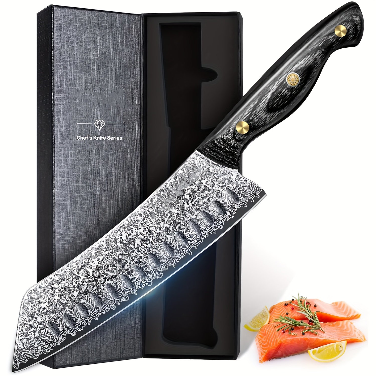 Hand-Forged -Style Damascus Chef’s Knife – 12.5″ Full Tang Ebony Handle, 7.2″ Blade, 60+ Degree Sharp , Corrosion & Abrasion , Ideal for Slicing, Dicing, Filleting – Professional Kitchen Knife with Exquisite Damascus Pattern, Perfect (Ideal for Christmas, Thanksgiving, Chef’s Collection) – Ideal for Home & Professional Chefs