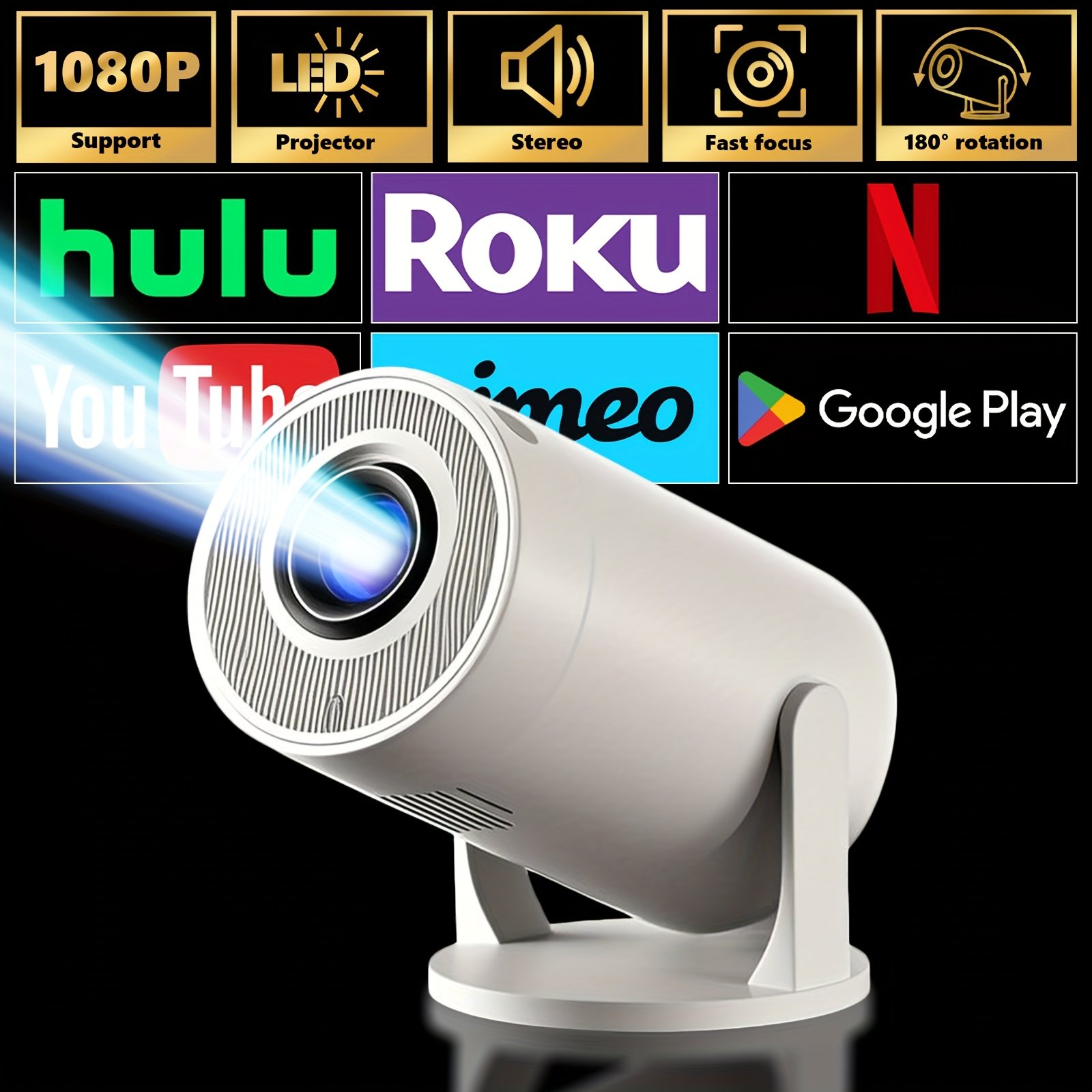 High-Definition Projector, Supports 1080P, Keystone Correction, Fast Focus, 180° Rotation, Compatible with Mobile Phones, Tablets, Computers, Suitable for Home Theaters, Holiday Parties, Perfect Holiday Gifts