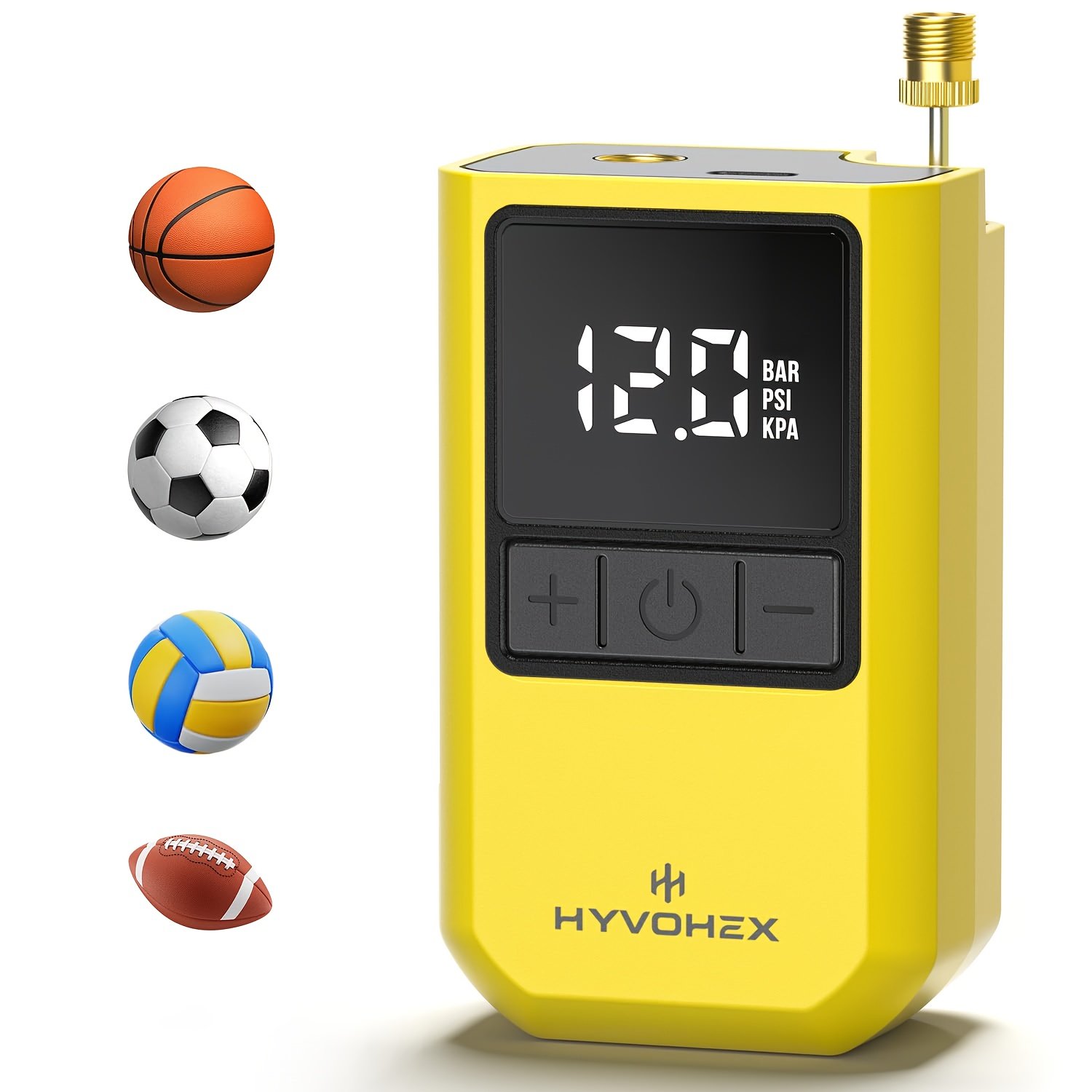 HYVOHEX Portable Electric Ball Pump with Brass Needle – 17PSI High Pressure, 1500mAh USB Rechargeable, LCD Pressure Gauge & Flashlight, Auto Inflation for Basketballs, Footballs, Air Rings – Compact Design for Indoor/Outdoor Use, Sports Equipment, Sleek Sports Gear, Durable Construction, Sports Enthusiasts, Outdoor Sports, Modern Sports Gear, Reliable Performance, Sports Fans