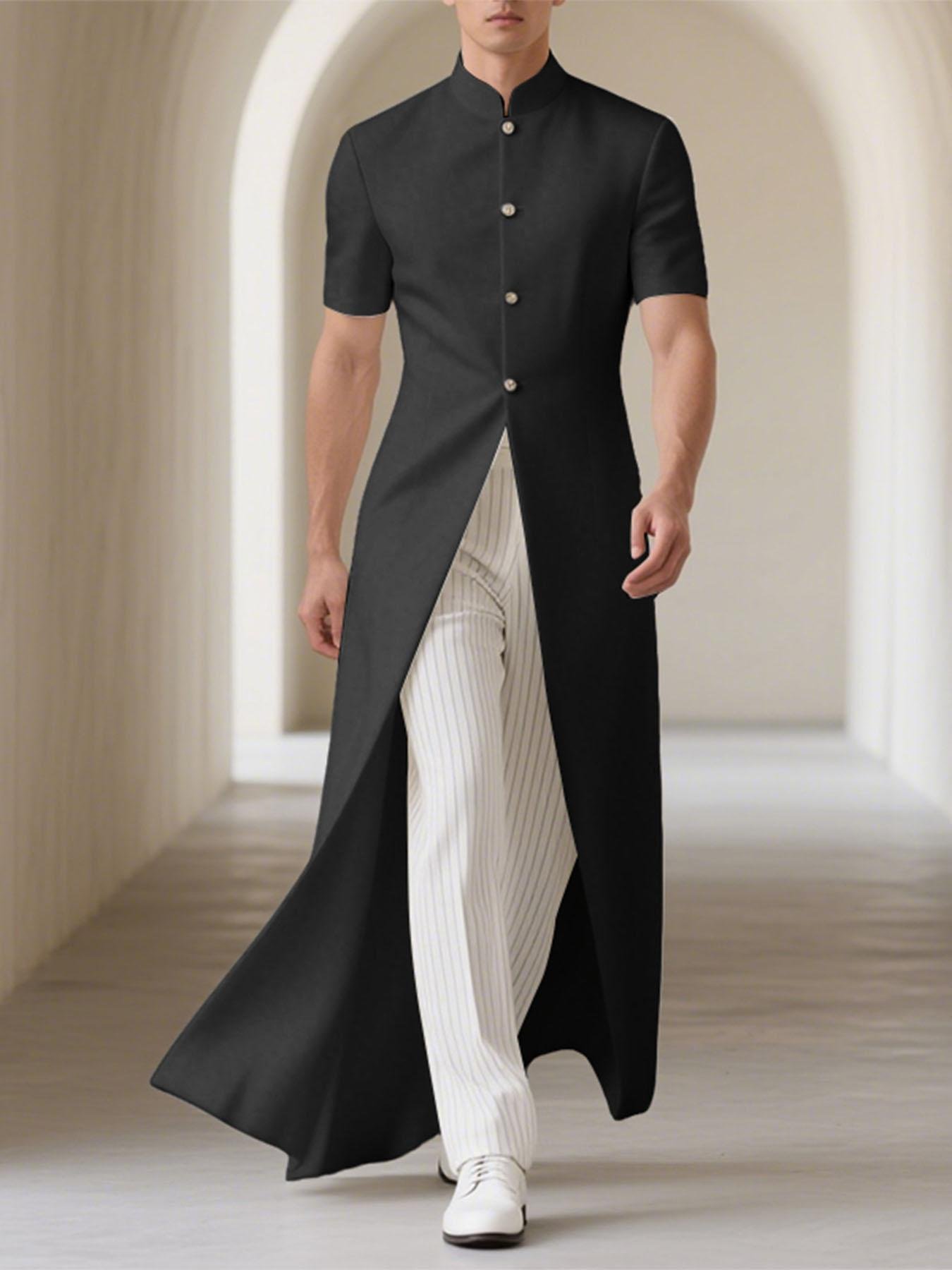 INCERUN Men’s Lightweight Jacket – Black Formal & casual blazer, Loose Fit Single-Breasted Coat with Mandarin Collar, Machine Washable Outerwear for Office, Wedding, Party – Minimalist Men’s Cardigan