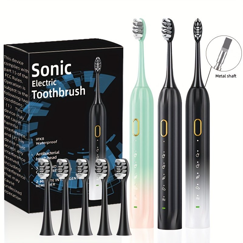 IPX8 Waterproof Sonic Electric Toothbrush with USB Charging, Couples with Replaceable Head Metal Shaft Electric Toothbrush for Adults, Men And Women, Smart Timer And 5 Replacement Brush Heads