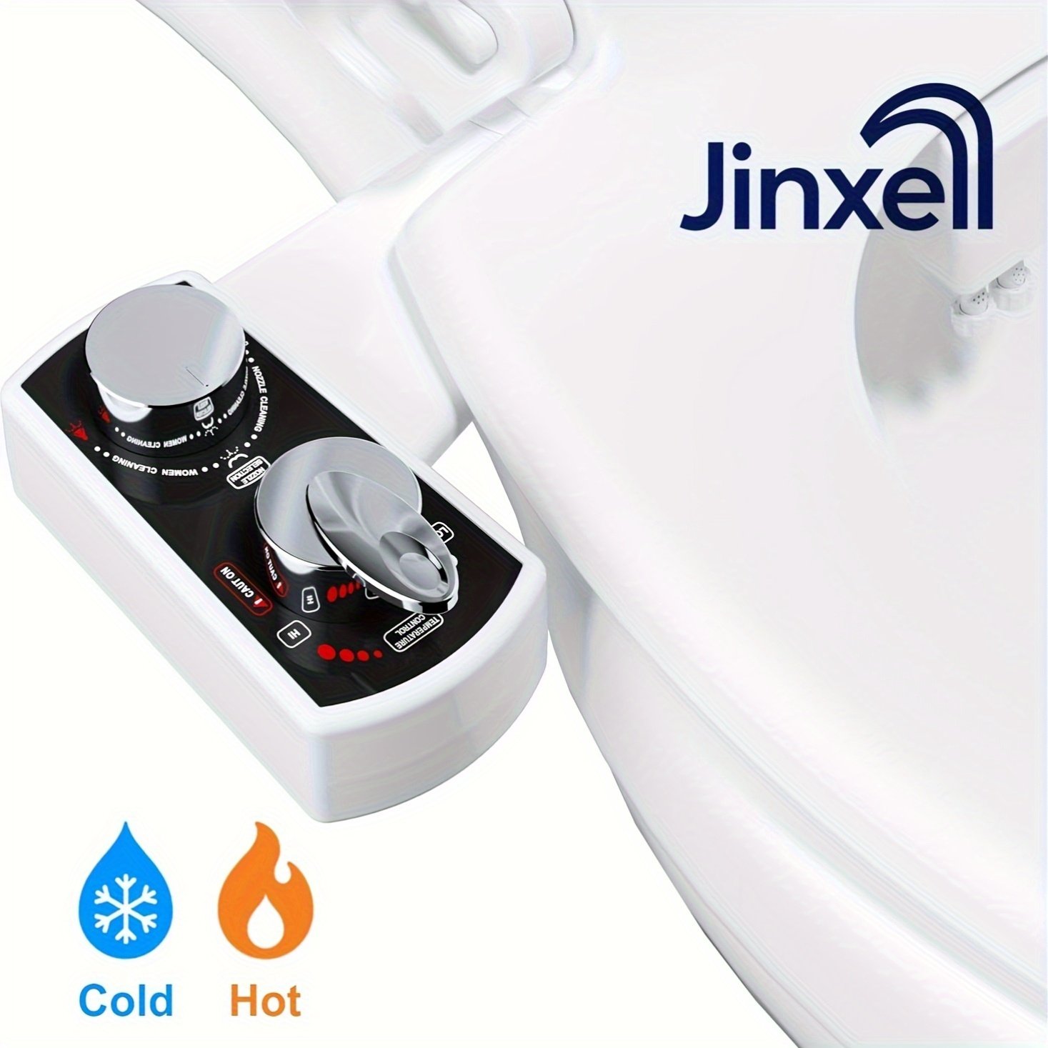 Jinxell Bidet Attachment for Toilet – Non-Electric Dual Nozzle Hot & Cold Water Spray, Adjustable Water Pressure Control, Self Cleaning Front & Rear Wash, 3 Spray Modes (Hot/Cold/Combination), White & Black Design, Bathroom Cleaning Tool, Modern Bathroom Accessory, Ergonomic Handle Design