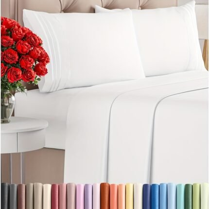 4pcs Solid Color Bed Sheets Set 18 Inches Deep, Luxury Soft Hotel Sheet Set, Shrinkage & Fade Resistant Embroidered Bedding Sheet Fitted Sheet+Flat Sheet+Embroidered Pillowcase, Summer Bedding Set