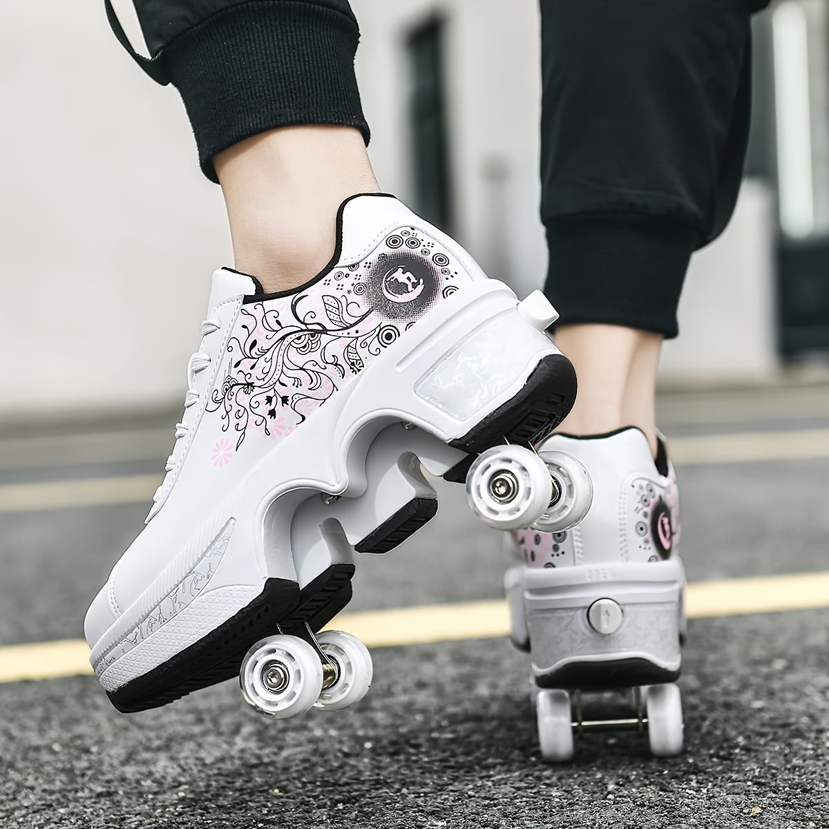 roller skate shoes for men women 2 in 1 deformation roller shoes with 4 retractable wheels multi functional roller skate shoes for skating walking breathable sneakers for outdoor sports unique gift for family lover friends