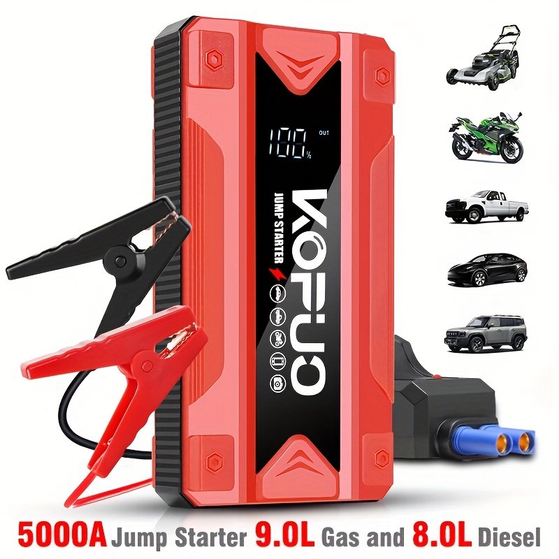 KOPUO 5000A Car Battery Jump Starter(2.38gal Gas/2.11gal Diesel)Portable Car Jump Starter Battery Pack/box, 12V Car Battery Jumper Starter with Safety Jumper Cables, Fast Charge, Lights, Compact