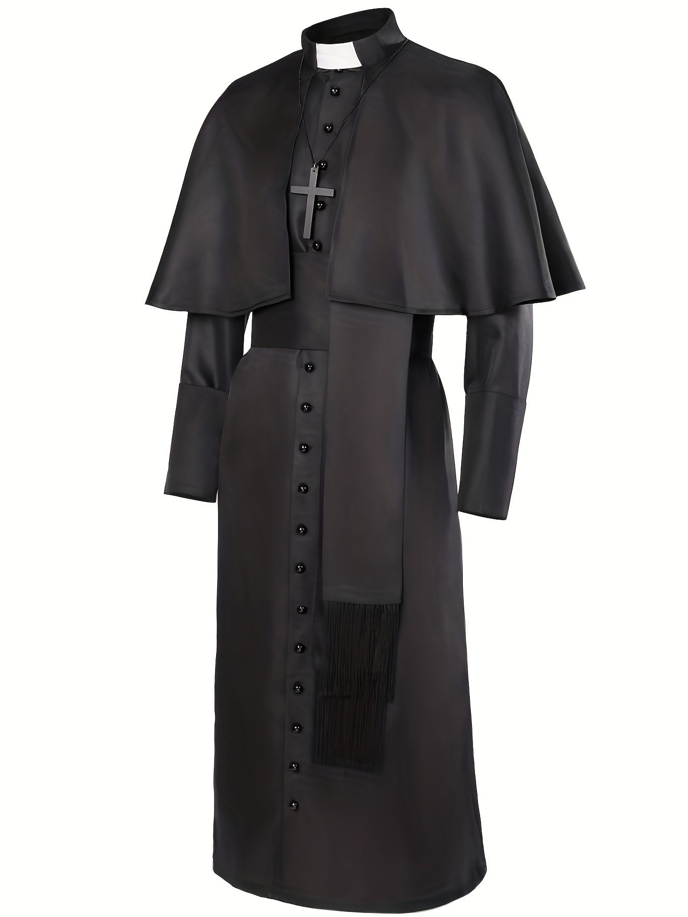 Medieval Priest Costume Long Sleeve Black Monk Robe Suitable for Carnival Halloween Cosplay Dance Party Outfit