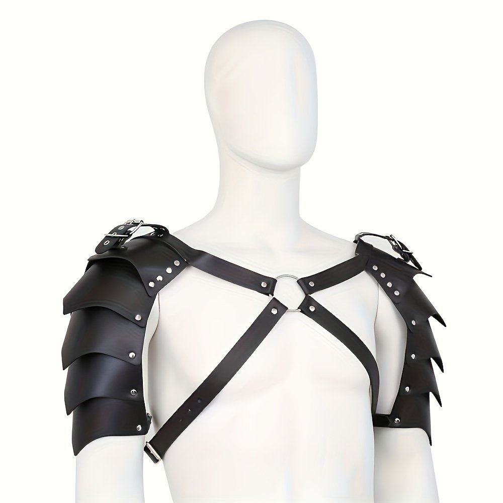 Medieval Viking Men’S Double Shoulder Faux Leather Armor Strap Set COSPLAY Halloween Role Playing Accessories