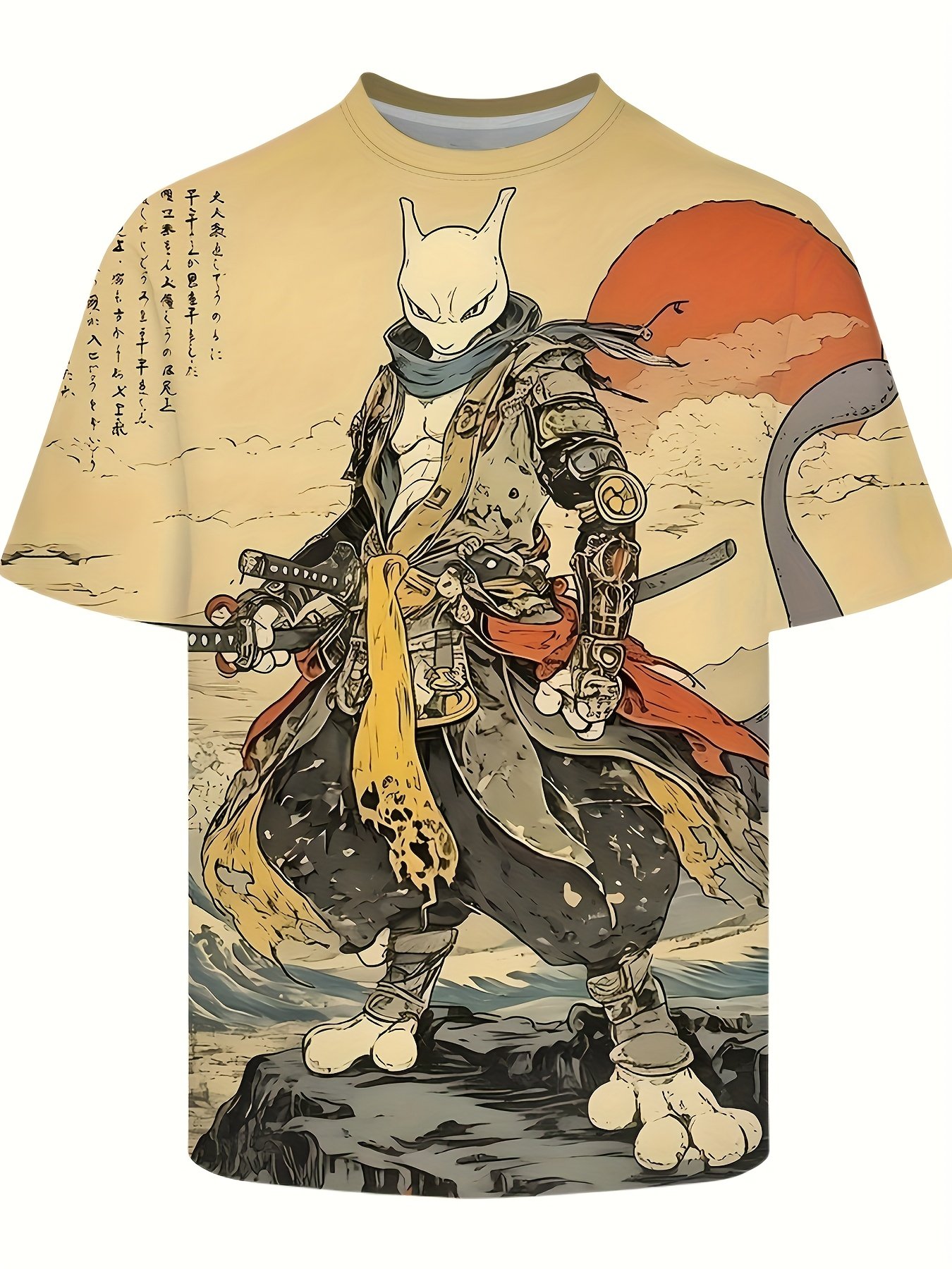 Men’S 3D Anime-Inspired T-Shirt with White Mask Character & Red Sun – Casual Crew Neck, Short Sleeve, Lightweight Polyester Blend, Perfect for Anime Fans & Casual Attire, Anime T Shirts, Fan Merchandise, Dynamic Character Design, Detailed Character Artwork