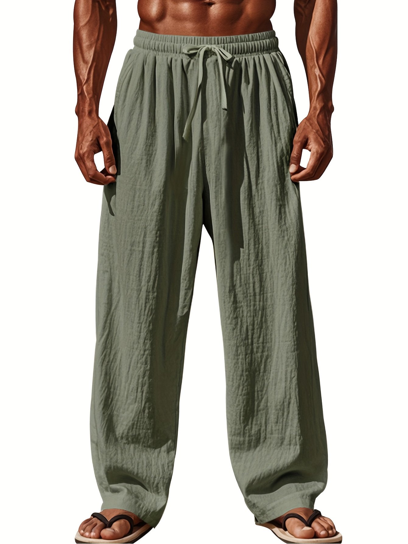 mens casual linen joggers solid color drawstring waist wide leg pants for breathable comfortable for beach gym or casual attire jogging pants gym workout pants relaxed fit pants nonstretch fabric