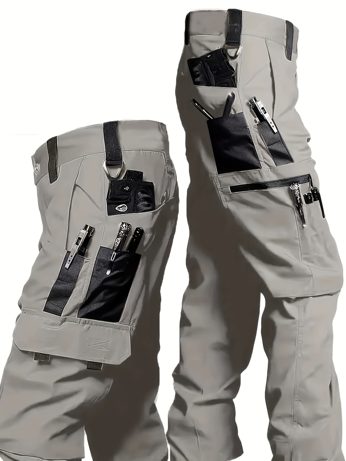 mens durable multi pocket cargo pants breathable stretch fabric zippered compartments ideal for hiking camping fishing hunting cycling outdoor workwear hiking pants