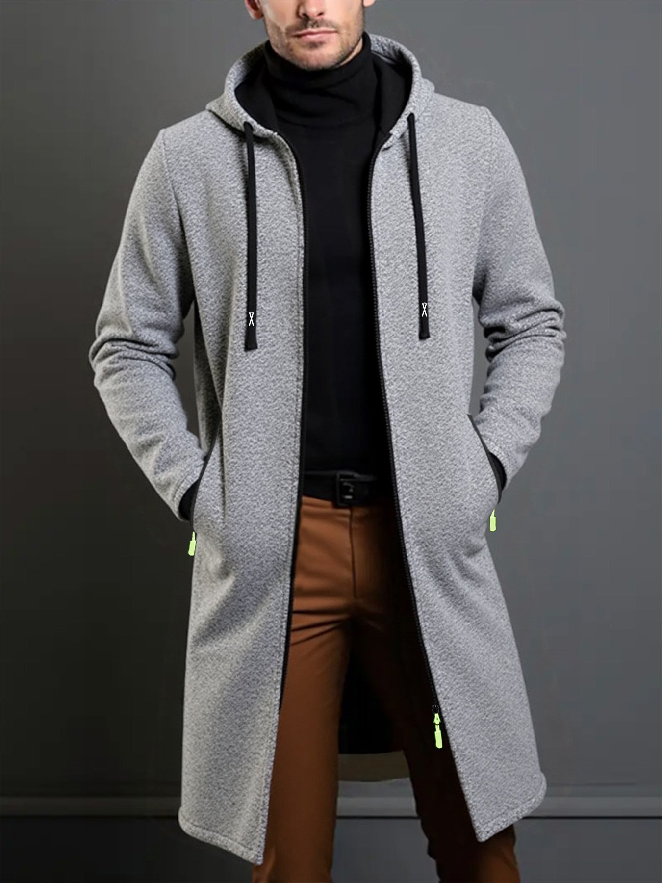 mens full zip hooded knit jacket coat thermal insulated full zip front with zippered pockets full length zipper closure machine washable winter coat for gym hiking everyday casual wear full zip hoodie jacket for men in neutral colors black gray beige brown relaxed fit with contrast zipper pockets soft knit fabric ideal for autumn and winter versatile for casual sports and outdoor activities hiking outerwear durable construction gym enthusiasts