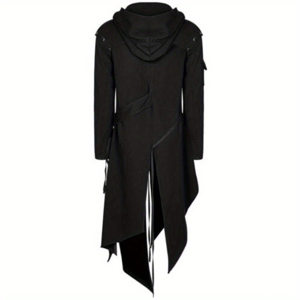 Men’S Halloween Costume Jacket – Irregular Trench Coat with Adjustable Straps, Fringe Detail, and Zipper Closure, Black Polyester for Themed Parties & Events, Halloween Costume Accessories