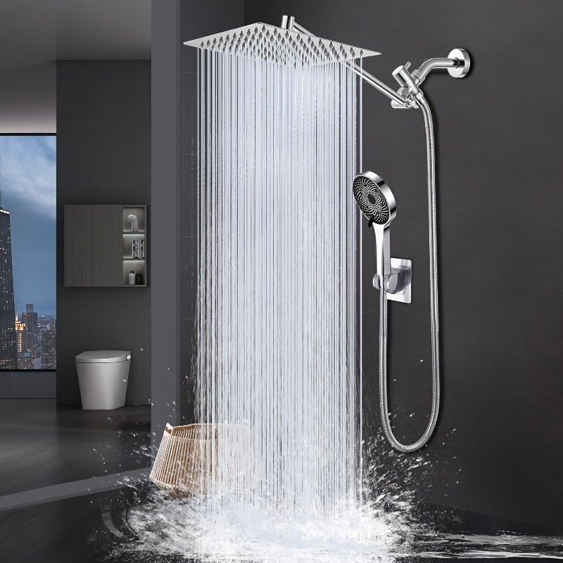 Modern Luxury Shower Head With Hand-held Shower Head Combination And Adjustable Arm, High-pressure Rain Shower Head, Galvanized/black Shower Head, Hand-held Shower Head, Shower Height Adjustable, Modern Design