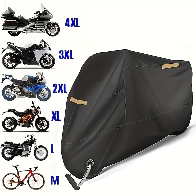 Motorcycle Cover, 190T Durable Fabric, Universal Fit, Anti-Tear, Reflective, Motorcycle Protection Cover|Reflective Design| Cover, Motorcycle Accessories, Lined Motorcycle Cover, Rain Canopy For Motorcycle, Motorcycle Canopy, Vehicle Cover, Sleek Motorcycle Accessory, Tearresistant Material, Reinforced Stitching, Protective Canopy, Allweather Cover, Motorcycle Enthusiasts, Commuters