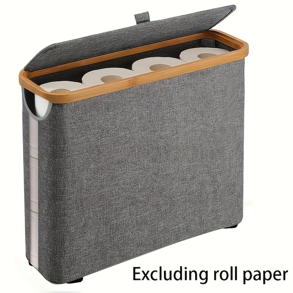 Natural Bamboo Bathroom Storage Basket, Large-capacity 9-roll Toilet Paper Storage, Nordic Style Grey Fabric Texture, No Need for Drilling, Wall-mounted/floor-standing Dual Use, 2025 Bathroom Organization Wonder, Toilet Paper Storage Containers
