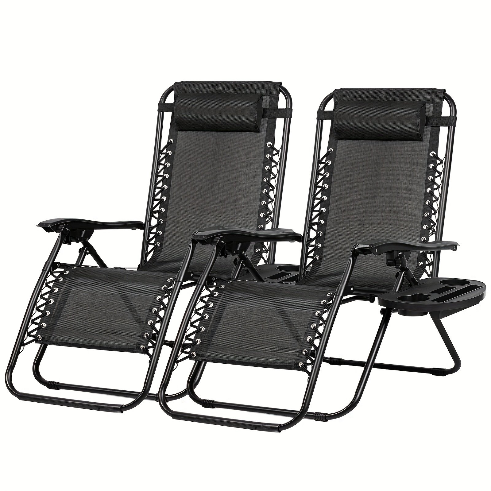 set of 2 relaxing recliners patio chairs adjustable steel mesh zero gravity lounge chair beach chairs with pillow and cup holder black
