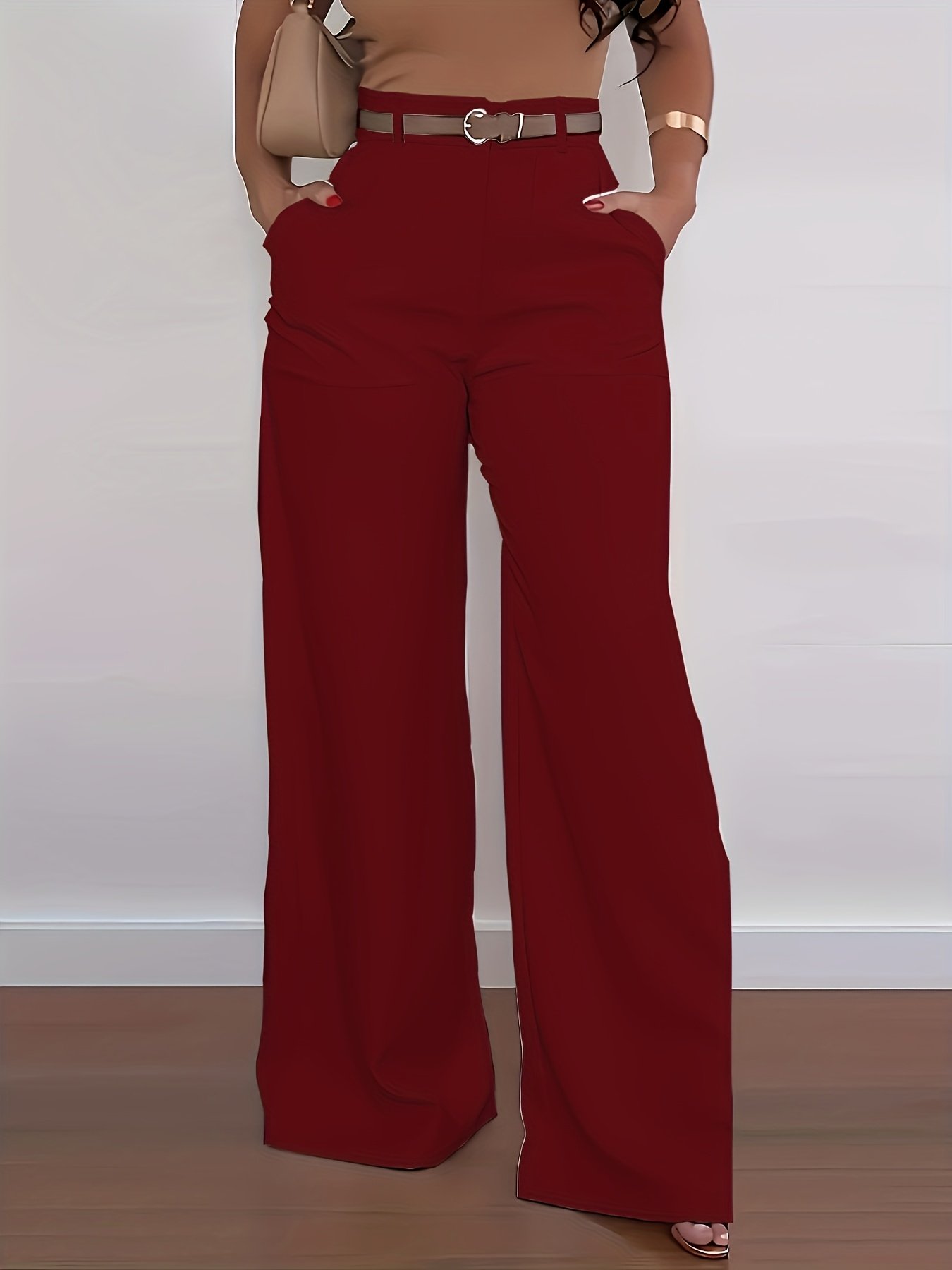 plus size plus size womens high waist wide leg pants solid color polyester machine washable versatile fashion vibrant look