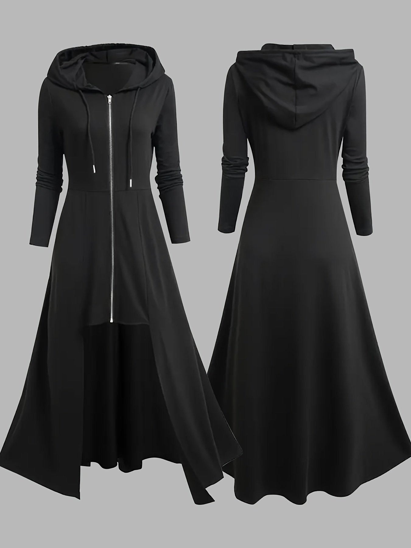 Plus Size – Plus Size, Women’S Plus Size Hooded Coat – Elegant Long Jacket with Front Zipper Closure, Loose Fit Winter Outerwear for Women, Formal & Everyday Outfits – Fall/Winter Clothing, Winter Hooded Jacket, Fall Fashion, Asymmetrical Hem, Quality Stitching, Stylish Hoodie, Fashion Lovers, Cold Weather Wear, Durable Fabric, Fashionconscious Women