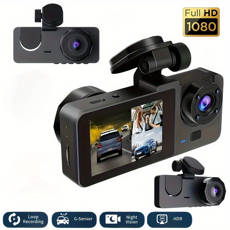 1080p 2 channel front rear built in tachograph uhd car camera with infrared night vision loop recording wdr 24 hour parking mode mount 30fps frame rate car plug universal driving position no battery required car camera for front and rear car safety camera sleek camera design video without battery