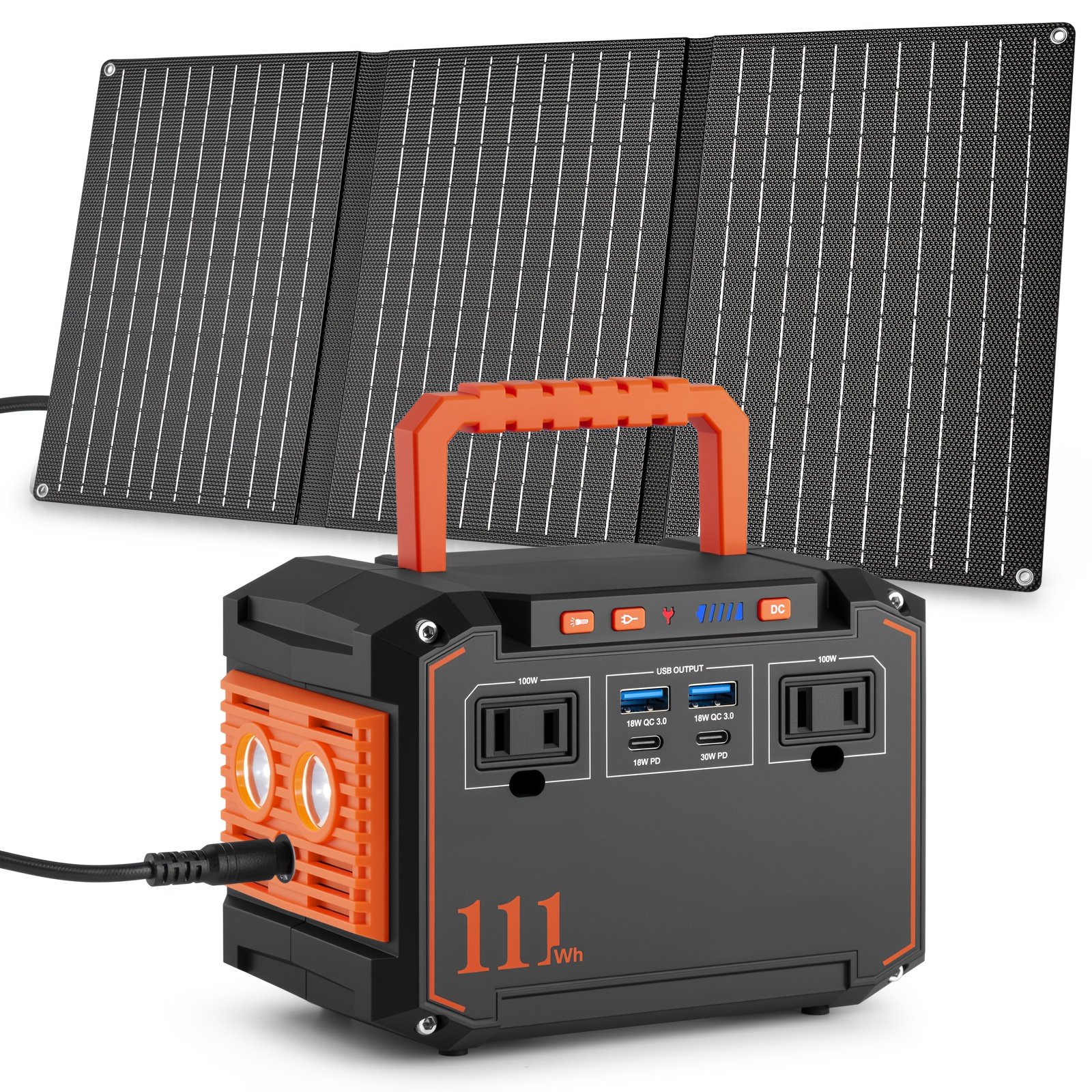 portable power station 100w 111wh with 30w solar panels with ac outlet 110v 3 usb a 2 usb c 2 solar generator for emergency hurricaneth portable generator for camping camping electricity power supply lightweight generator durable construction highefficiency generator multifunctional charger generator