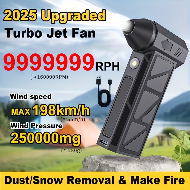 Portable turbojet hair dryer -4 speed wireless dust collector handheld cooling turbofan, personal cooling fan with battery USB-C charging, suitable for dust, snow, camping, keyboard cleaning – the ultimate small tool gift for men