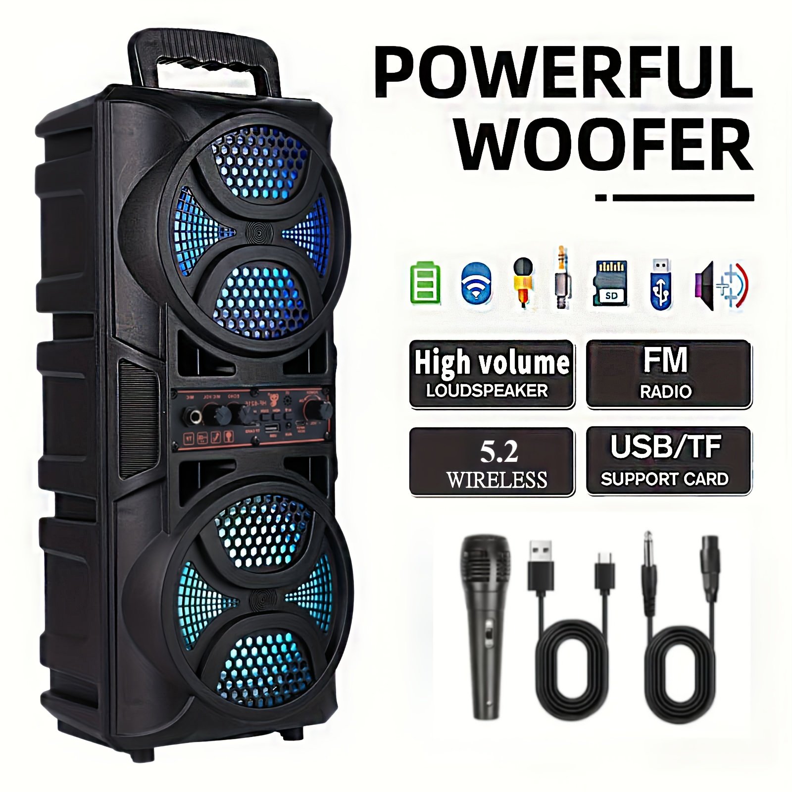 Portable Wireless Speaker With Double 6.5” Subwoofer Heavy Bass, Wireless 33ft Outdoor Speaker, Big Loud Large Speaker, Support FM Radio, LED Colorful Lights, Stereo Sound, For Home, Party, Travel